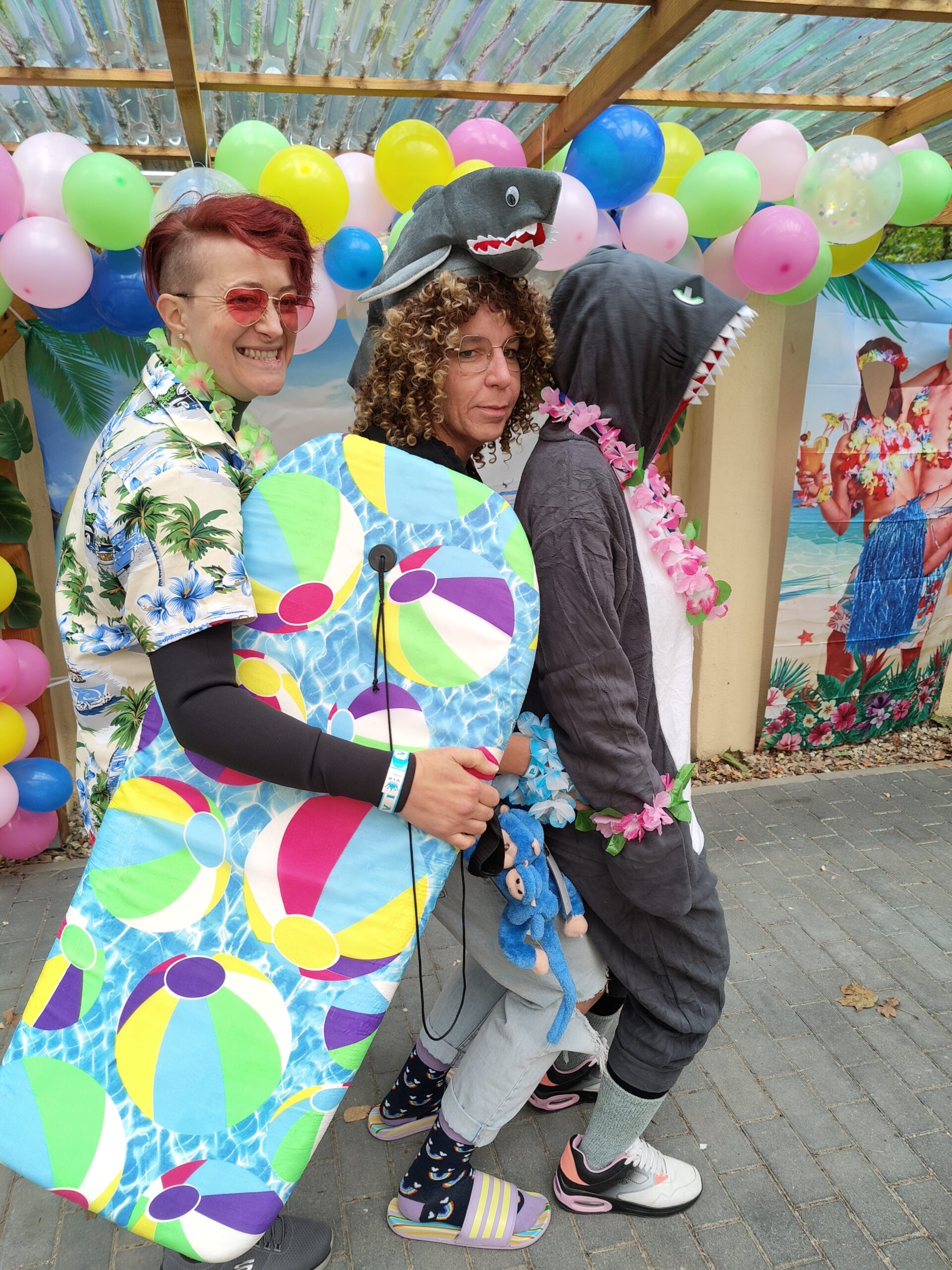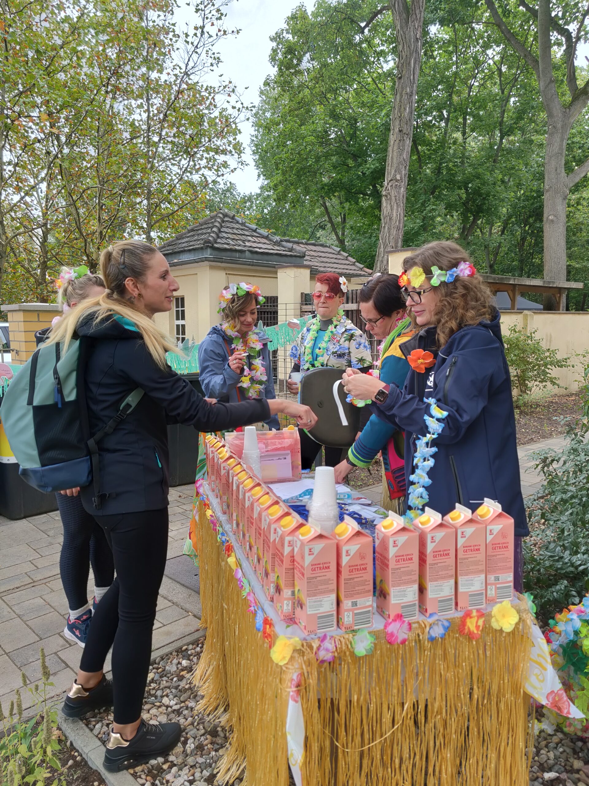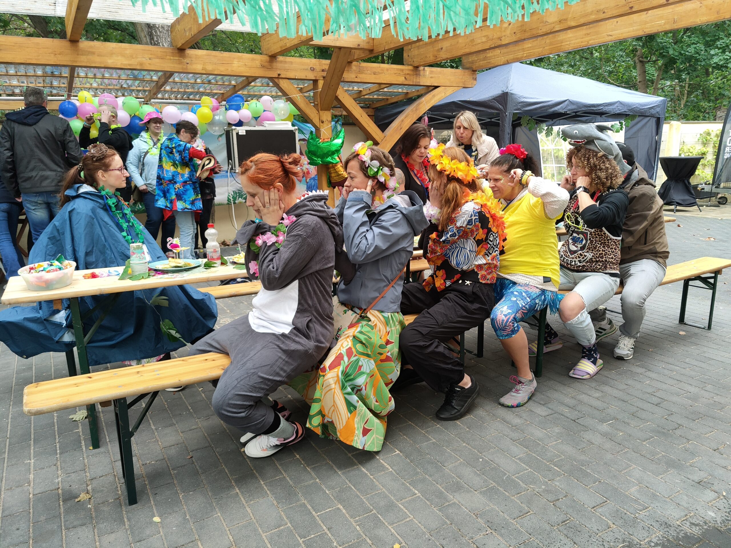 Für unser diesjähriges Sommerfest wurde das entspannte Urlaubsfeeling der Balearen-Insel Mallorca kombiniert mit exotischer Hawaii-Stimmung nach Karlshorst geholt. Passend zum Motto „Hawaii-Mallorca Party“ erhielten die Teilnehmer*innen des Sommerfestes vom Empfangskomitee Blütenketten und einen Fruchtcocktail zur Begrüßung. Anschließend sorgten spannende Teamspiele für gute Laune und boten die Möglichkeit, Kolleg*innen aus