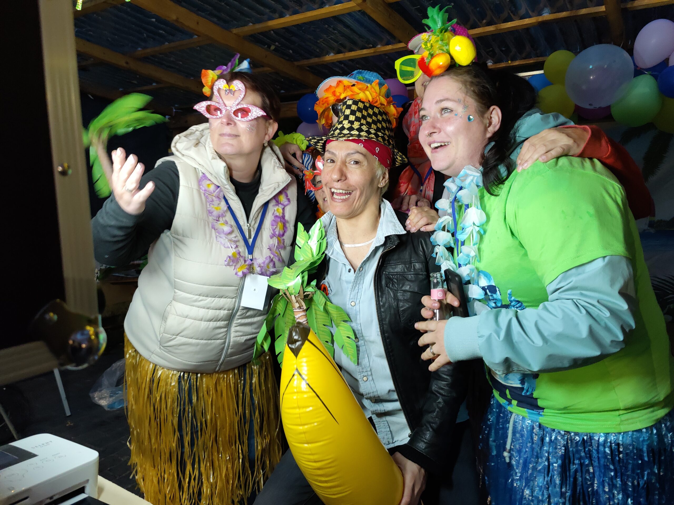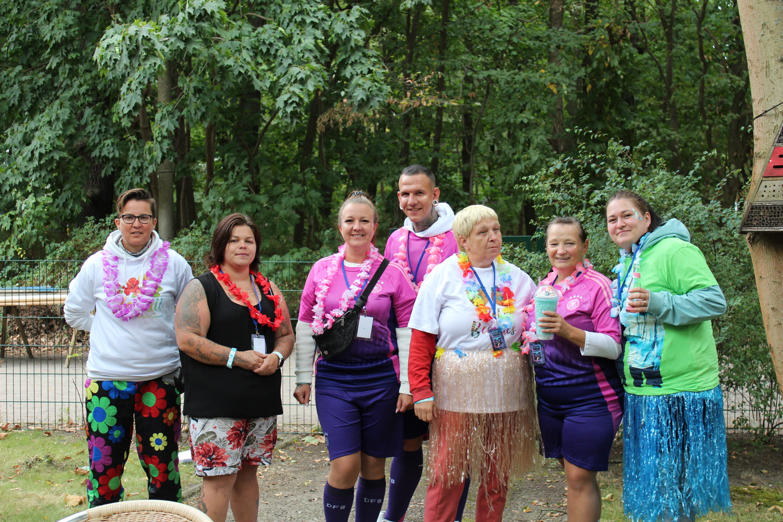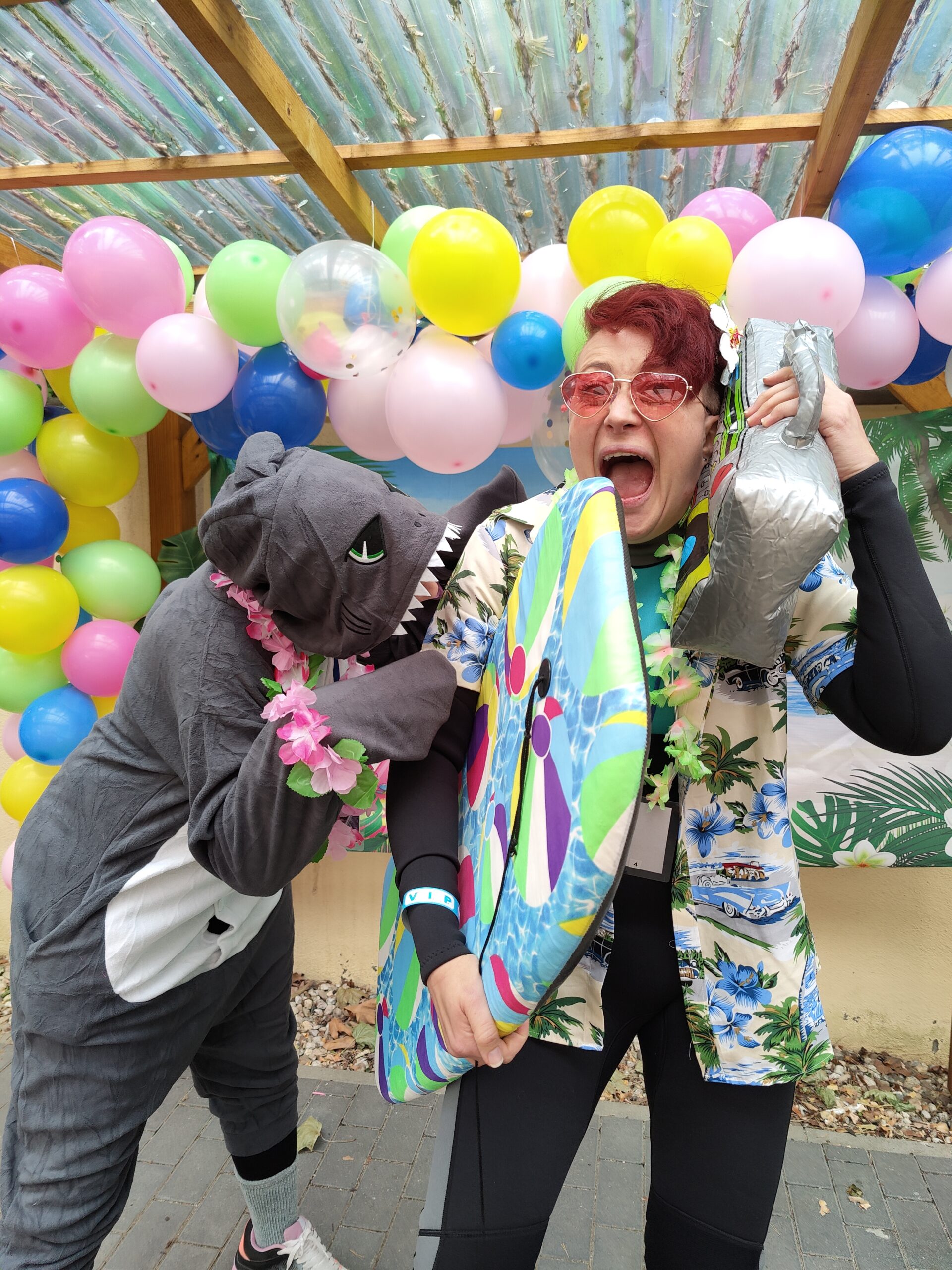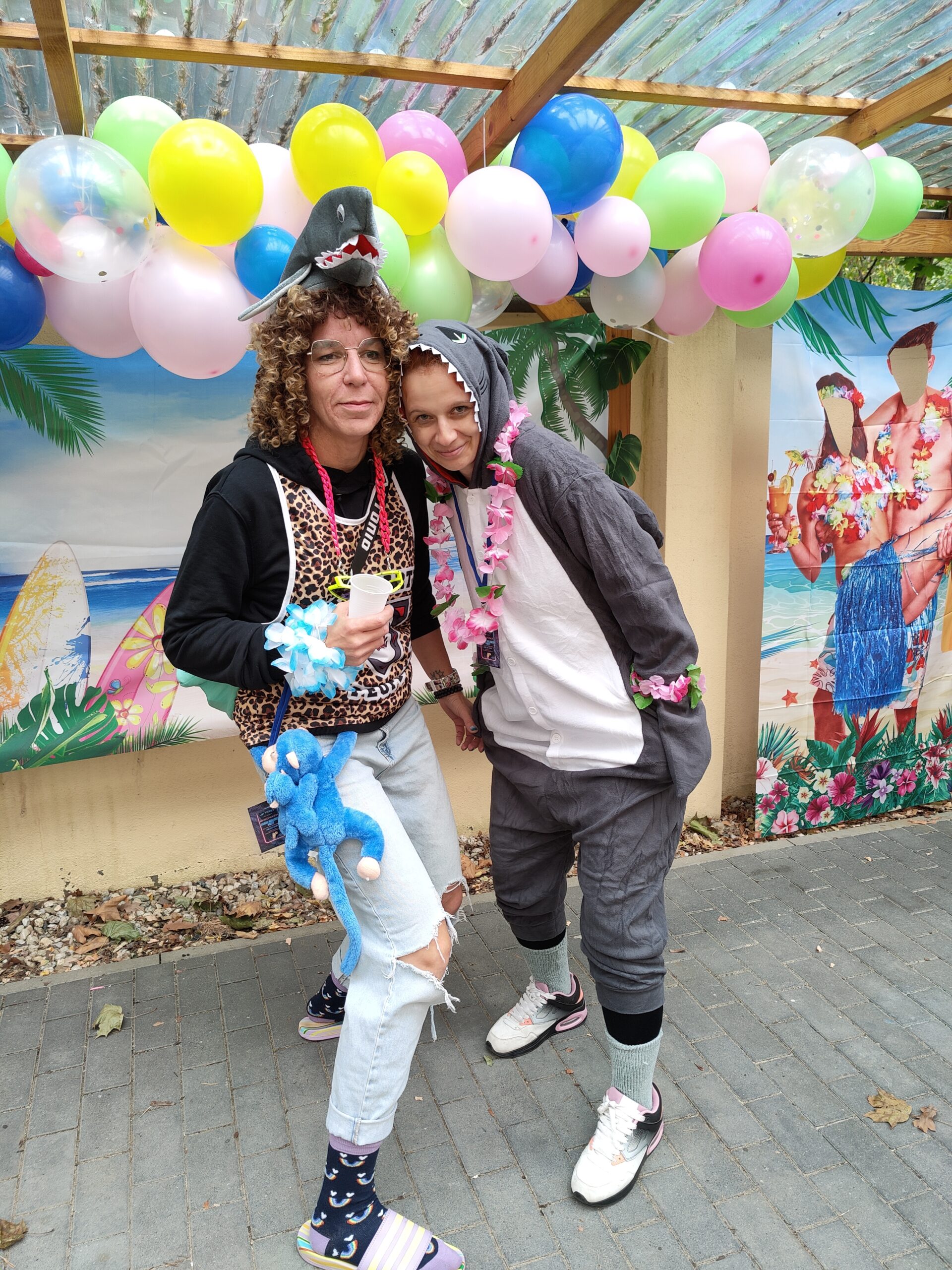 Für unser diesjähriges Sommerfest wurde das entspannte Urlaubsfeeling der Balearen-Insel Mallorca kombiniert mit exotischer Hawaii-Stimmung nach Karlshorst geholt. Passend zum Motto „Hawaii-Mallorca Party“ erhielten die Teilnehmer*innen des Sommerfestes vom Empfangskomitee Blütenketten und einen Fruchtcocktail zur Begrüßung. Anschließend sorgten spannende Teamspiele für gute Laune und boten die Möglichkeit, Kolleg*innen aus