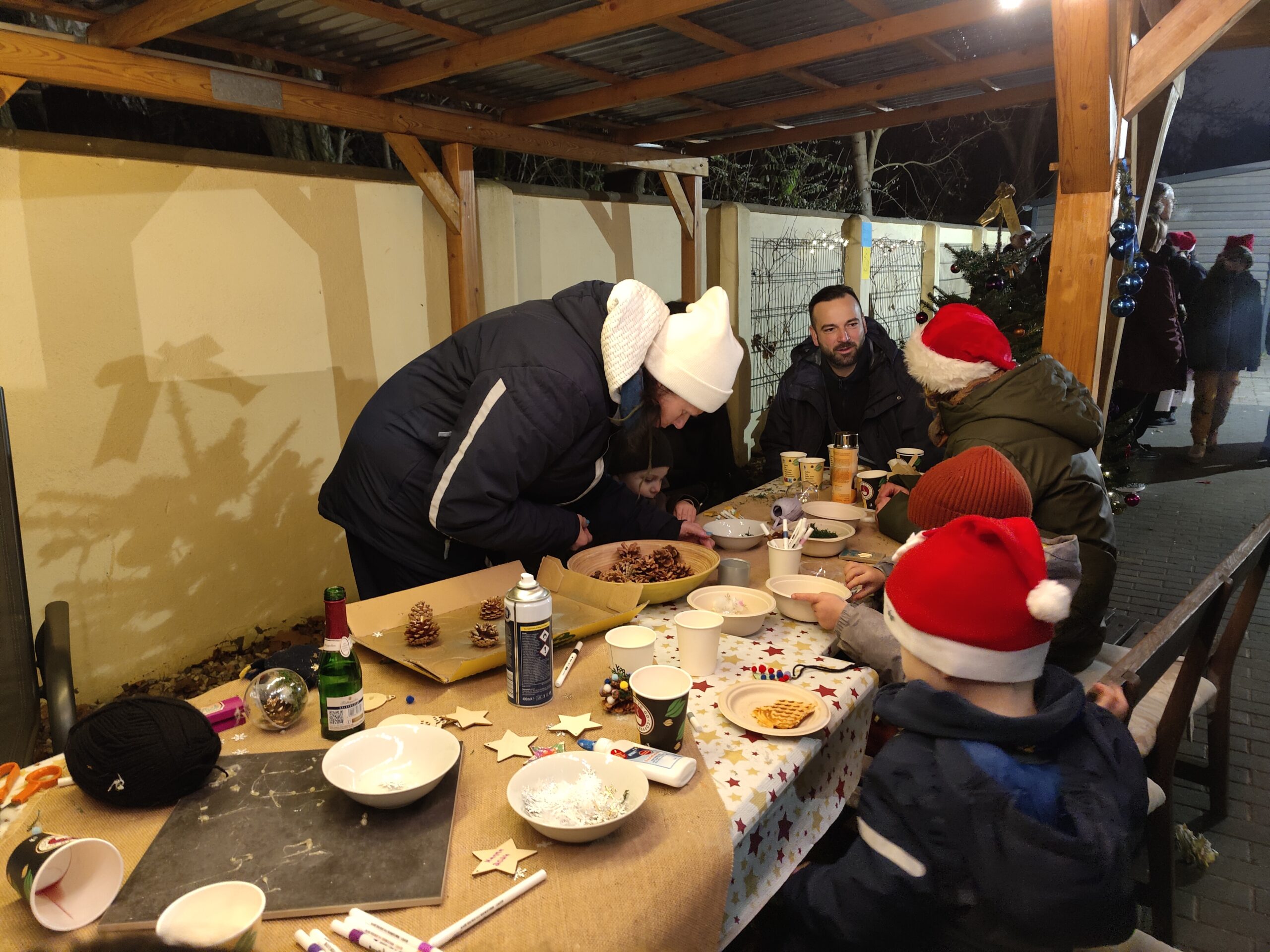 Ab 16 Uhr füllte sich das Außengelände und ein Abend voller Lichterglanz, verlockender Düfte und fröhlichem Stimmengewirr begann. Die binschonda-Igelfamilie, klein und groß, kam zusammen, um das Jahr 2024 gebührend ausklingen zu lassen.