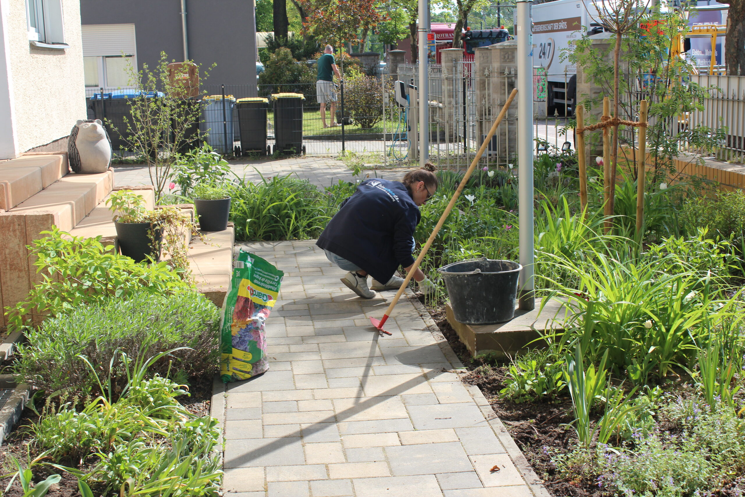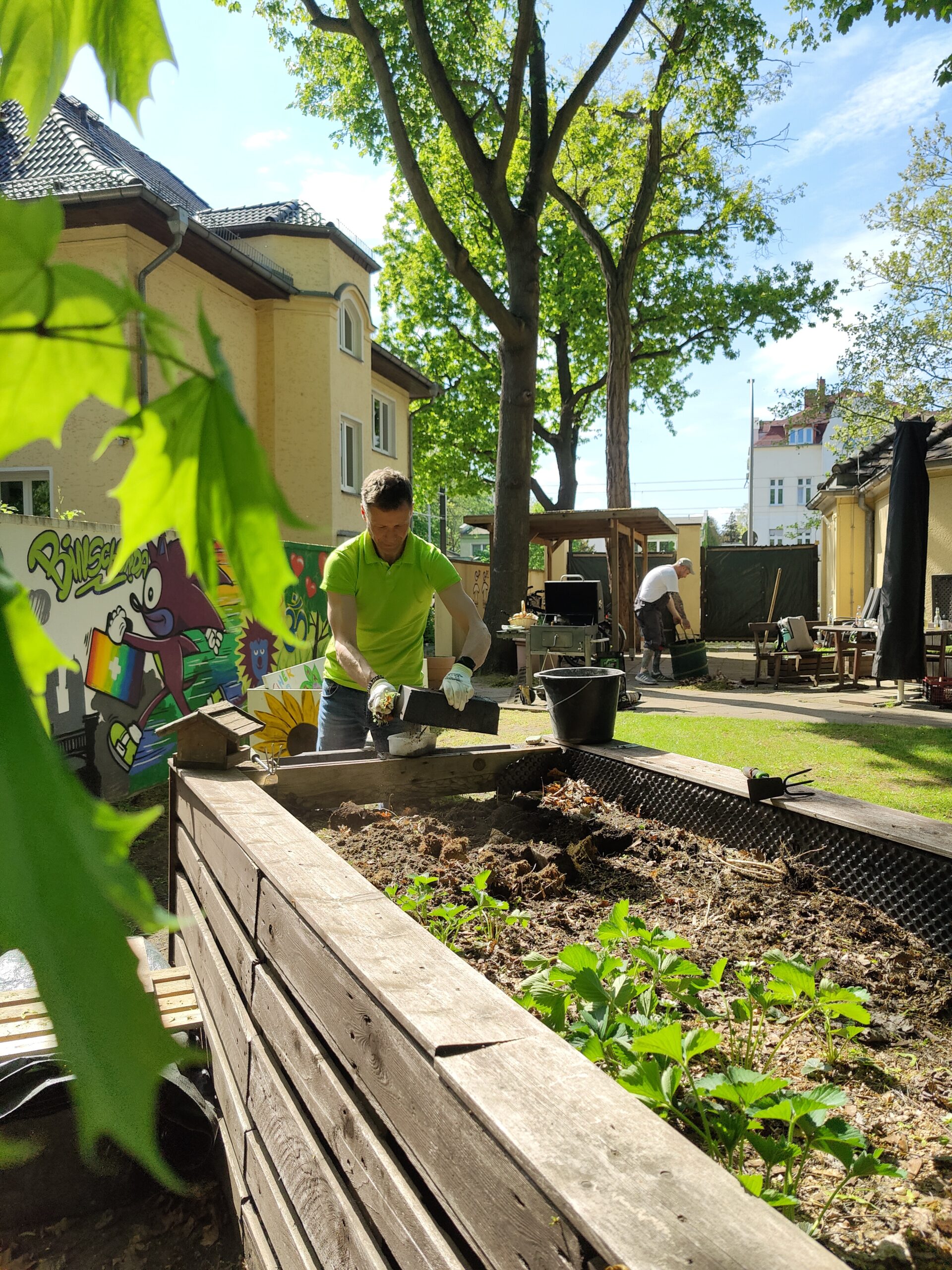 „Gemeinsam für unser grünes Wohnzimmer“ hieß es am 30. April. Das binschonda-Team traf sich auf dem Außengelände der Treskowallee 121 zum alljährlichen Gartentag, um das kleine grüne Paradies am Firmensitz auf Vordermann zu bringen. Mit Schaufel, Harke und ganz viel Teamgeist bewaffnet, machten sich die Helfer*innen unter der fachkundigen Anleitung unserer Gartenexpertin Gabi ans Werk. Gabis Auge für nützliche Pflanzen und die liebevolle Gartenpflege machte wieder einmal den Unterschied. Gemeinsam als Team wurde anschließend dafür gesorgt, dass Wildwuchs und Laub keine Chance hatten.