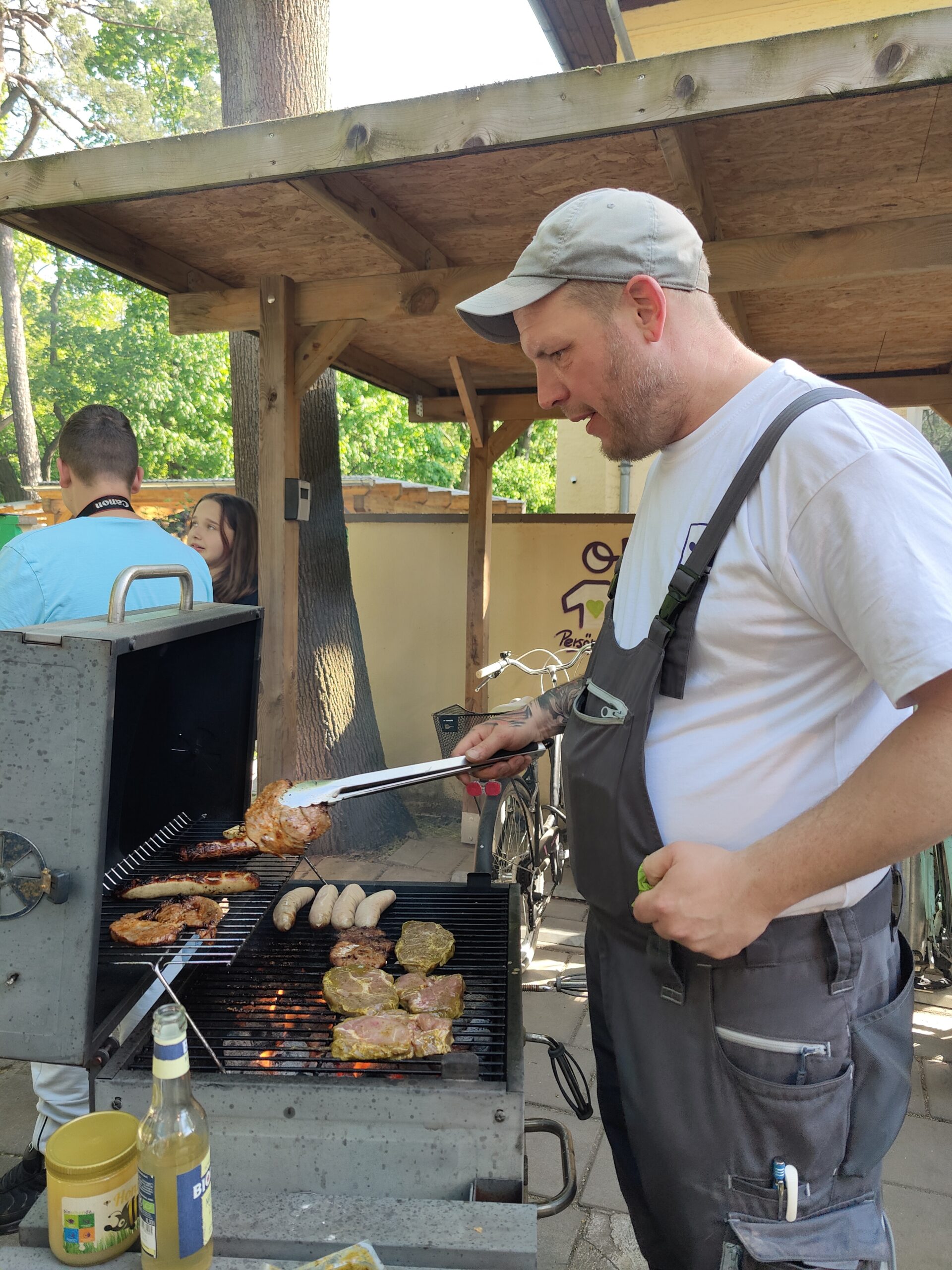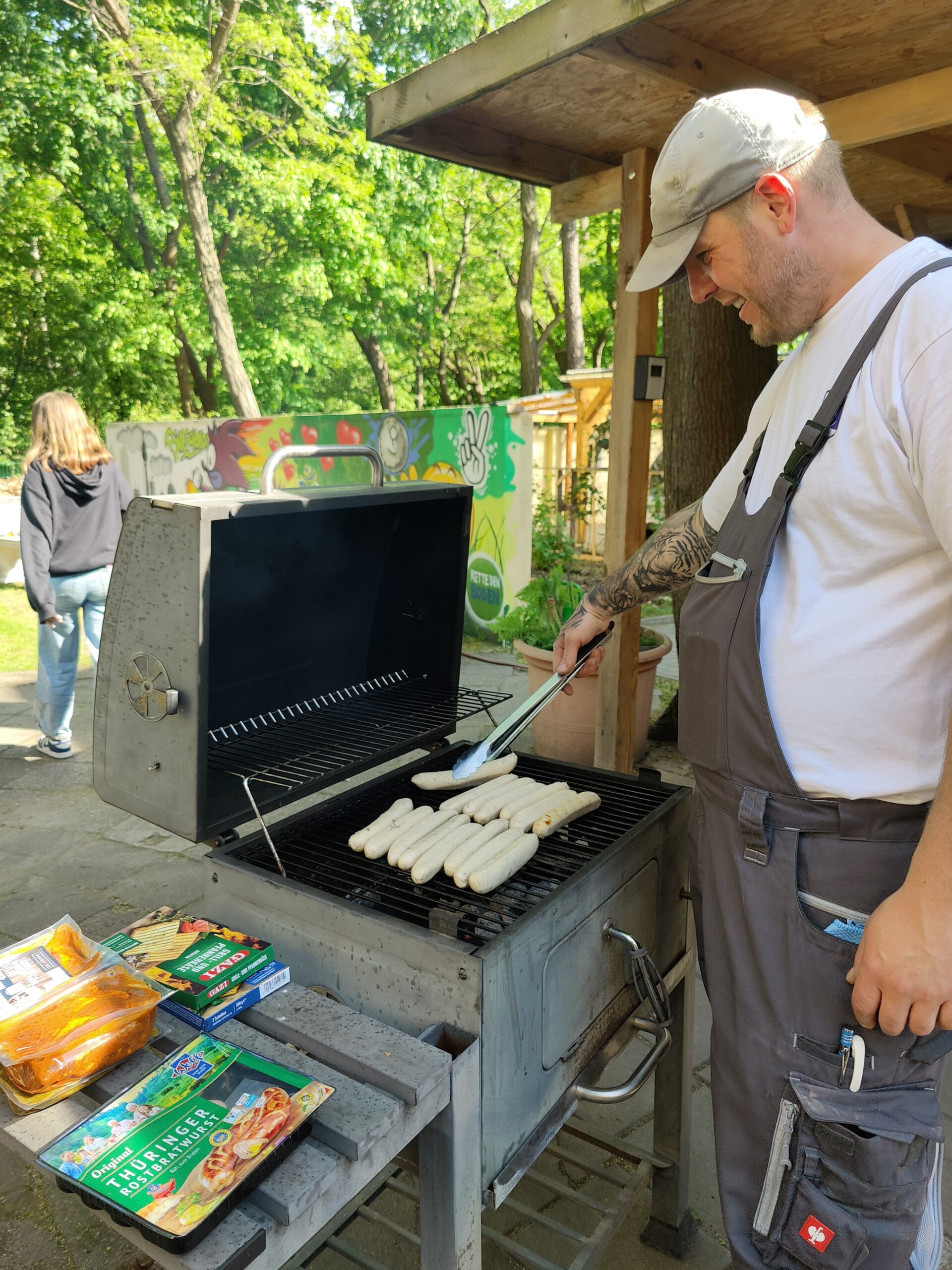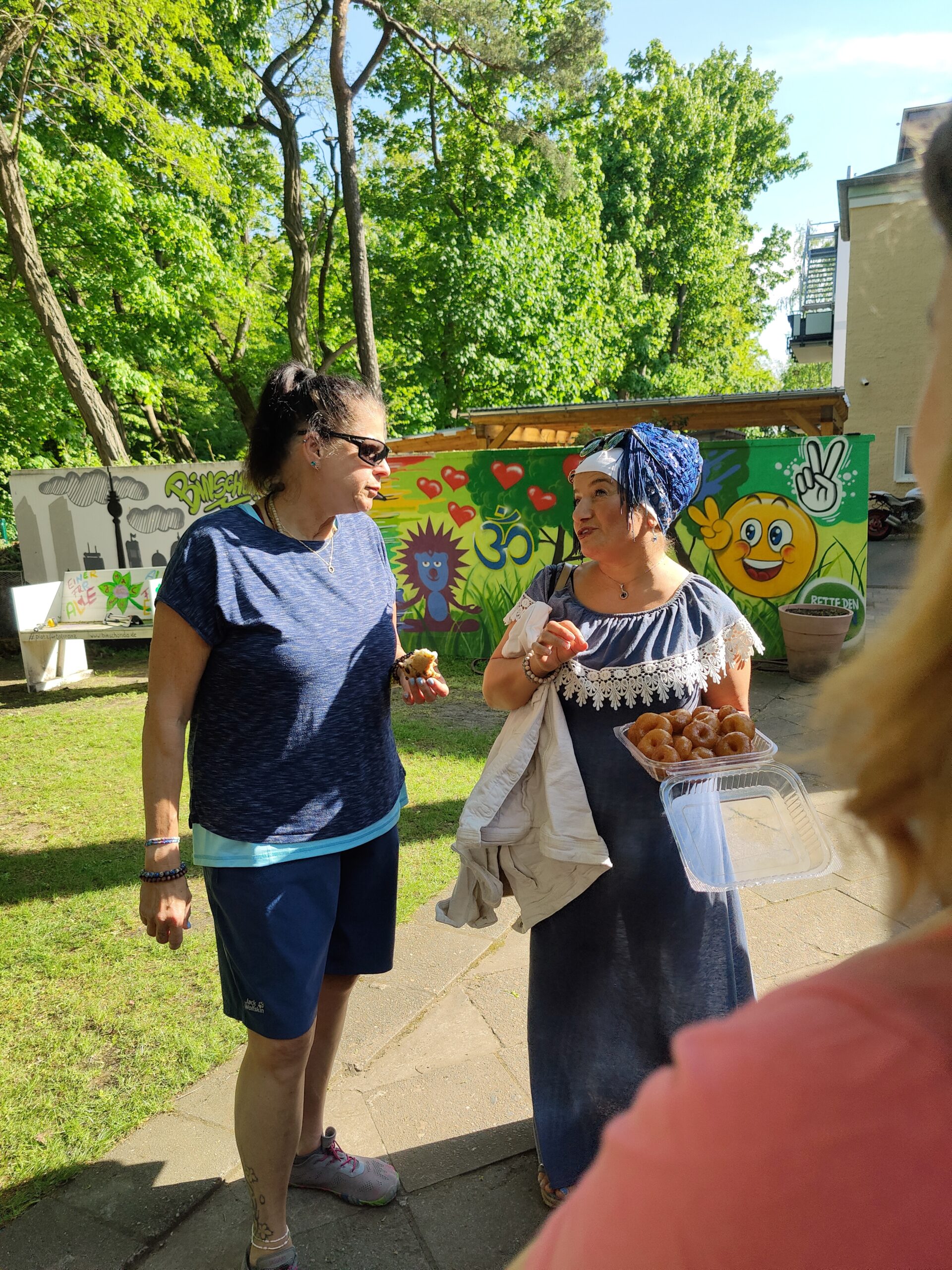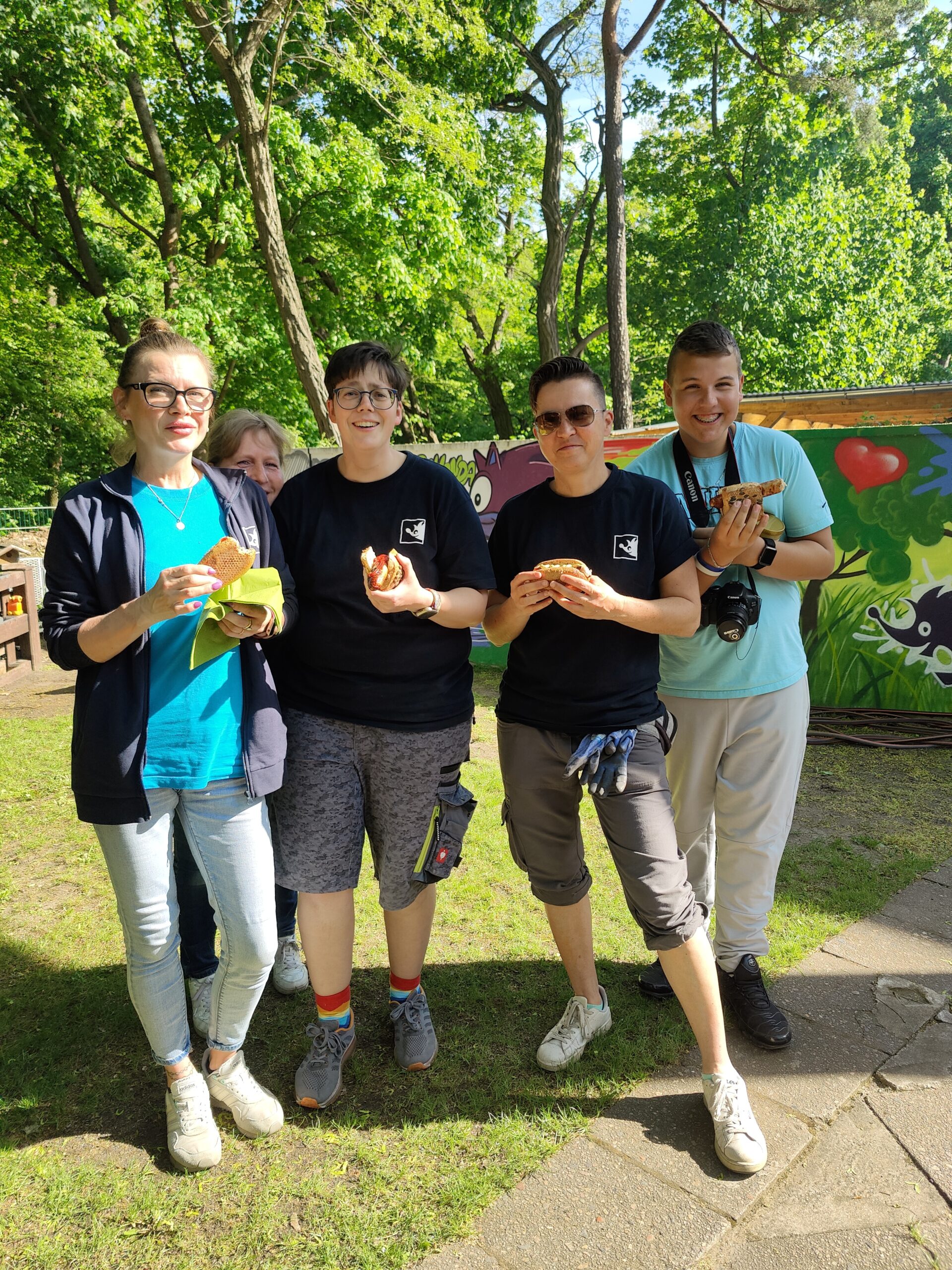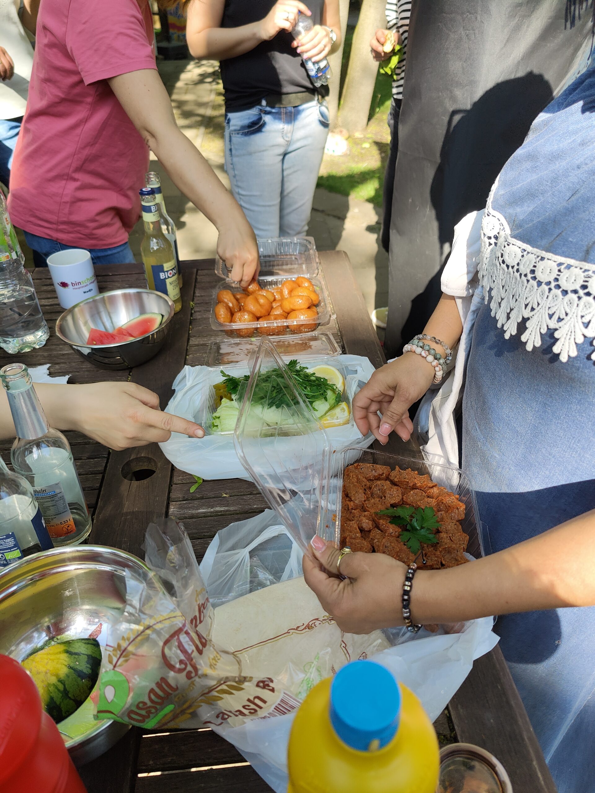 Nach getaner Arbeit versorgte Grillmeister Norman alle fleißigen Gartenhelfer*innen mit köstlichen Leckereien, Wassermelone brachte die ersehnte Erfrischung und Kollegin Nagi verwöhnte uns mit liebevoll zubereiteten veganen Spezialitäten und Gebäck aus ihrer Heimat – ein echtes Highlight!