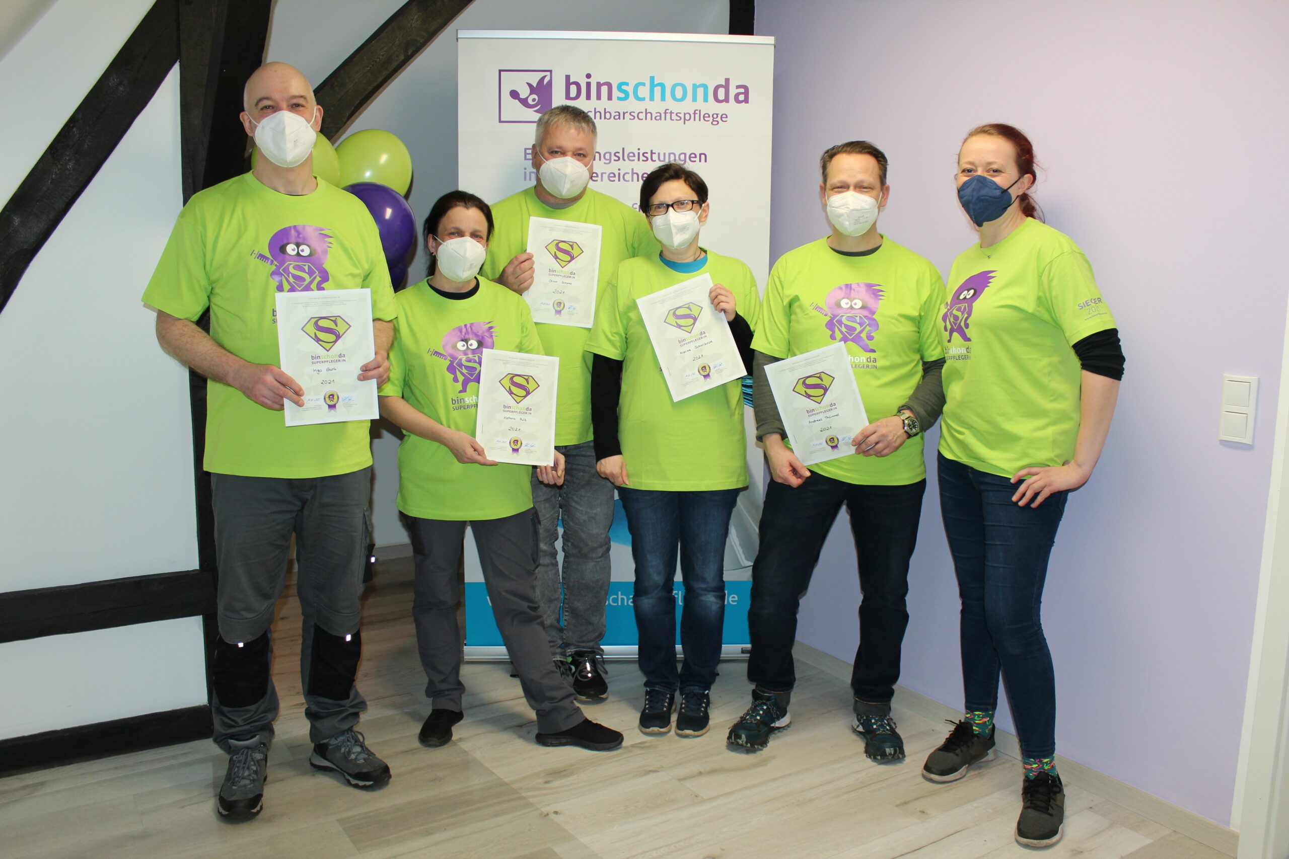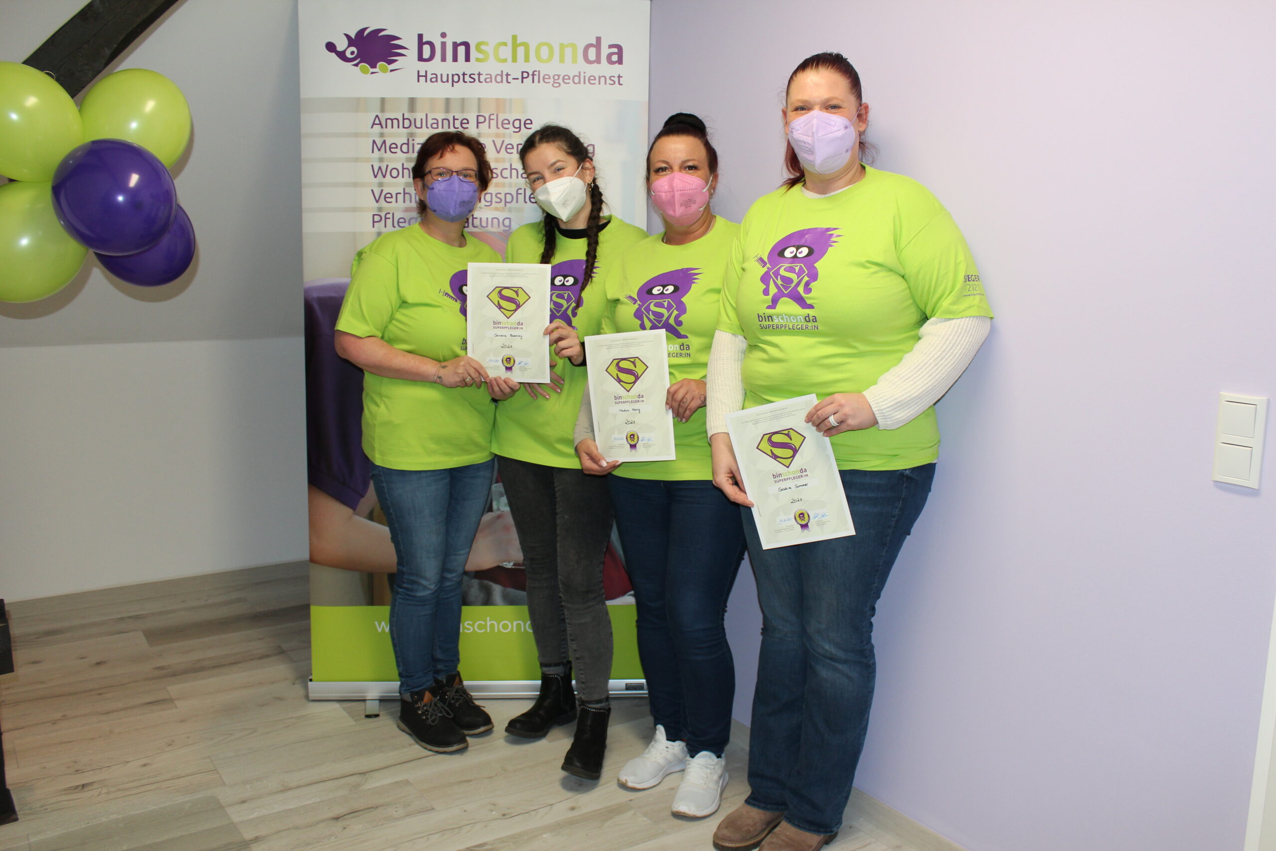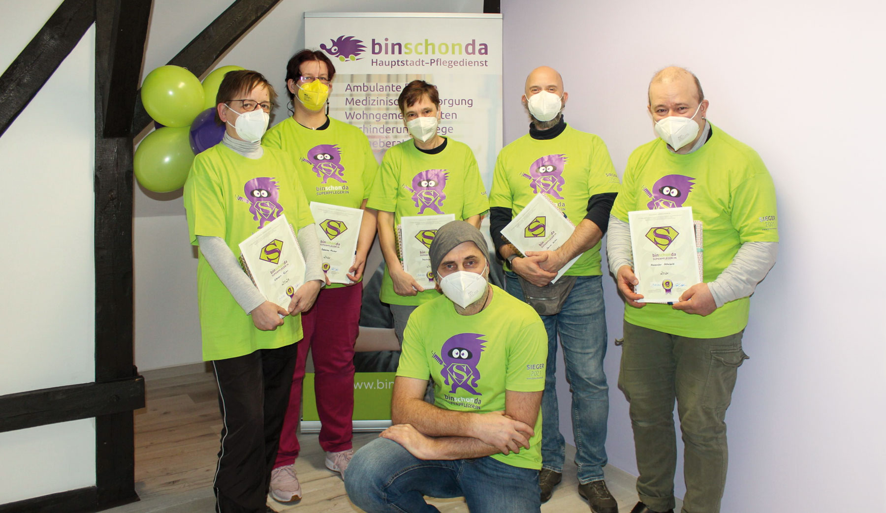 Seit dem Jahr 2015 feiert binschonda die Held*innen aus den eigenen Reihen und kürt jedes Jahr die Superpfleger*innen des Jahres. Klienten und eine betriebsinterne Jury ermitteln Jahr für Jahr anhand einer Vielzahl von objektiven und subjektiven Faktoren, wer die besten und engagiertesten binschonda Mitarbeiter*innen sind. Die Platzierungen sind nicht nur ein Zeichen der besonderen Anerkennung, sondern mit Prämien von bis zu 3.000 EUR verbunden. Werde auch Du Superpfleger*in bei binschonda!